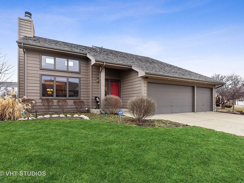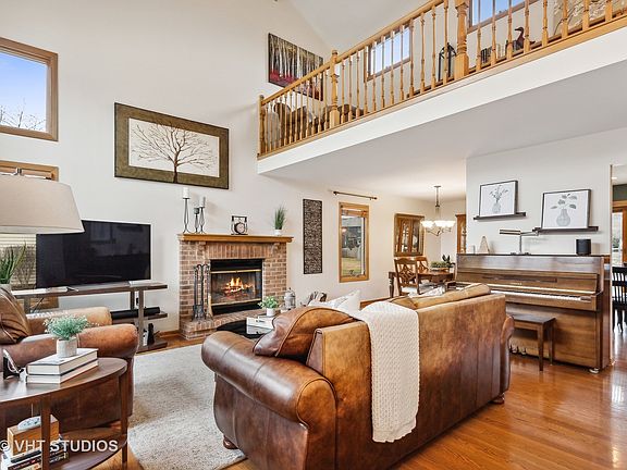 Ideal location! Low taxes! Walking distance to one of Gurnee's best parks! 3 Bedroom, 2 1/2 bath custom home on a picturesque street. 1st floor Primary bedroom with ensuite bath! Remodeled kitchen with granite counters and sleek black appliances! Hardwood flooring on 1st level. 2nd level has 2 huge bedrooms that share a full bath, plus a loft perfect for an office or reading area. Main level living area with dramatic vaulted ceiling. Updated powder room! All windows and sliders are Anderson. Finished basement with recreation room and small office! 3 car garage!!