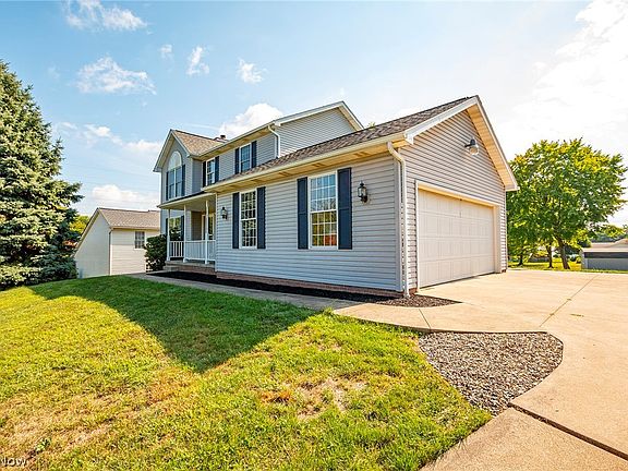 Welcome to a beautiful Colonial in Canton, near the Football Hall of Fame. The beautiful home feels like home as soon as you walk in the door. The living room enjoys plenty of natural light through the windows, and an open floor plan into you eat-in Kitchen. The kitchen has updated LVT flooring. The laundry room is on the first level, as well as a half bath also with LVT. The second floor adds three bedrooms. The master ensuite has plenty of room for your king size bed. The attached bath has a double vanity, shower, and a large walk-in closet. The other two bedrooms have newer paint and carpeting. The full bath on the second floor has a large tub/shower combo, and a single vanity. The full finished basement has a full bath with a shower, as well as a second hook up for laundry. The basement can be turned into a separate living area, with its own entrance from the backyard, including a patio. The great back yard has a shed that comes with the house. Close enough to enjoy all the Hall of