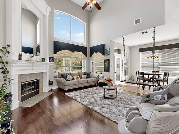 Experience refined living in this elegant 5-bedroom, 4-bath residence in one of Frisco’s premier golf gated communities, Heritage Lakes. Thoughtfully designed with over 3,500 sq ft of sophisticated living space, this home showcases soaring ceilings, designer finishes, wood flooring, and an open, light-filled floor plan perfect for entertaining. The gourmet kitchen offers abundant cabinetry, granite surfaces, and seamless flow to the spacious family room with a wall of windows overlooking the private backyard. The primary suite is a serene retreat featuring a spa-inspired bath and generous walk-in closet. A guest suite on the main level provides flexibility, while the upstairs includes three secondary bedrooms, a game room, and media ideal for relaxation. Outdoors, enjoy an expansive yard overlooking a fountain pond ready for a pool or outdoor living oasis. The open floor plan features multiple living and dining areas, ideal for entertaining or family gatherings. A 3-car garage with custom cabinetry and Frisco ISD’s top-rated schools complete this exceptional offering. Enjoy walking trails, ponds, community pool, golf, and amenity center. Perfectly positioned near upscale shopping, dining, and major thoroughfares, this home defines luxury living in Frisco.