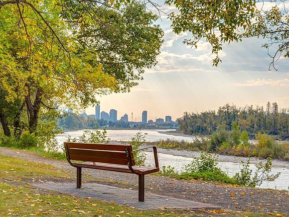 Welcome to Hemisphere on the Bow, a well-maintained and exclusive low-rise condominium building located on a quiet street on the banks of the Bow River. Imagine walking out your front door and stepping onto the pathways and green spaces that run along this stunning waterway! This top-floor, two-story unit offers over 1,300 SF of living space, a main-floor primary bedroom, three full bathrooms and two titled underground parking spaces. Vaulted ceilings adorn nearly every room in this spacious unit and combined with the numerous oversized windows and unobstructed view, natural light fills the home throughout the day. The open-plan kitchen boasts white cabinets, granite countertops, stainless steel appliances and a furniture-style island that offers additional seating and storage. A cozy family room features an elegant corner fireplace and access to the very large rear deck where you can enjoy the expansive view across the neighborhood to the Foothills Medical Centre. A ‘flex’ room is accessible from the kitchen through French doors and is ideal for a home office or a formal dining room. A full bathroom across the hall also makes this room an option for an additional bedroom. The roomy primary suite includes a large closet and an elegant ensuite bathroom with a jetted soaker tub and separate shower. The upper-level loft is extremely spacious and includes a full bathroom and laundry room, making this space ideal for an additional bedroom, a playroom, a second family room, a home gym, a hobby room or a home office. There is no limit to what you can do with this fantastic space. Walk to Lic’s Ice Cream, the Lazy Loaf and Kettle and Avatara Pizza, drive five minutes to Market Mall, commute downtown in no time via car, transit or bike or simply enjoy the many outdoor spaces this incredible community has to offer.