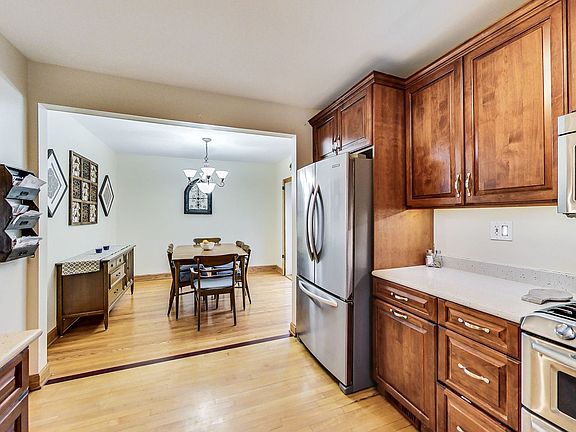 WELCOME to this lovely 3 Bedroom English style HOME! Upon entry you'll find a welcoming Living Room with Bay window. The Kitchen is beautiful boasting Maple cabinets w/cherry finish, Stainless Steel appliances, and Quartz counter tops. Kitchen is open to Dining Room with patio doors that extend your living space out onto the large deck, which overlook the fenced in yard and your 2 car garage. One Bedroom and full Bathroom on the Main Level, with 2 additional bedrooms and 1/2 bath upstairs, for a layout that could satisfy a variety of needs! Hardwood floors throughout. Finished basement offers family room, separate laundry room, a bonus office space, and a separate storage room. Great location! Walkable to Metra commuter train, local high ranking schools, grocery store, restaurants and Brookfield Zoo!