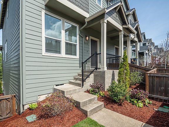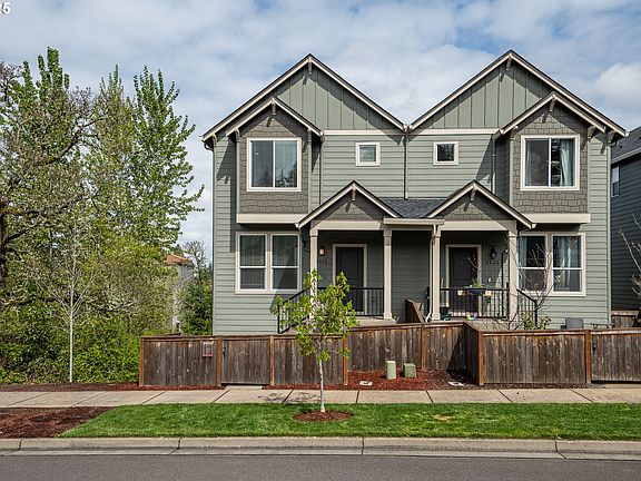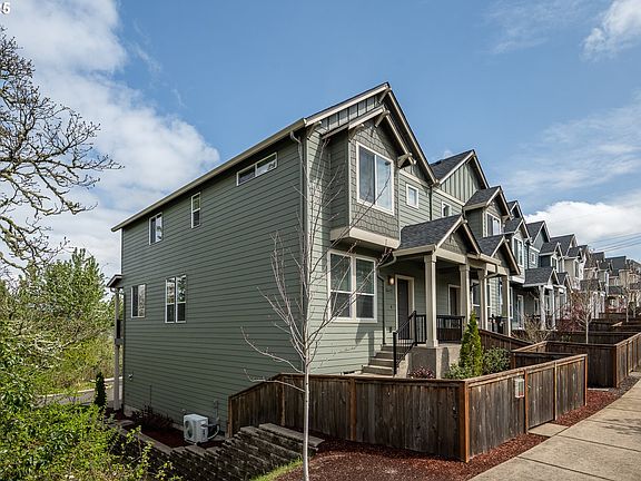 Welcome to this beautifully maintained craftsman townhome in the East Mountain neighborhood. Built in 2021, it offers modern comfort, thoughtful design, and sweeping views of the valley—perfect for anyone wanting to enjoy the feel of the Pacific Northwest while staying close to schools, trails, and everyday essentials. The main level features high ceilings, an open layout, and a kitchen with granite countertops, soft-close cabinets, Energy Star-qualified stainless steel appliances, an island, and a dining nook that opens to a covered balcony. Gas is available for those who prefer it. Natural light pours in throughout the home, and nearly every window offers a view of surrounding green space. Just off the living area, a fourth bedroom with double doors makes a great home office or guest room. Upstairs are three additional bedrooms, including a spacious primary suite with a walk-in closet, double sinks, and a walk-in shower. Each bedroom has its own walk-in closet, and all bedrooms—as well as the living room—are wired with Cat 6 for reliable connectivity. The oversized two-car garage is extra deep and includes a utility sink, 220V outlet for a future EV charger, and access to unfinished storage under the stairs and in the basement area. An energy-efficient heat pump provides zoned heating and cooling, and programmable light switches help save energy. The HOA handles exterior maintenance, including roof, siding, and landscaping, for truly low-maintenance living. This location is hard to beat—zoned for Edison Elementary, Roosevelt Middle, and South Eugene High, with both Lane Community College and the University of Oregon just minutes away. You’ll find easy access to local favorites like Hendricks Park, Pre’s Rock, Laurel Hill Park and playground, Matthew Knight Arena, restaurants, and shops. For commuters, I-5, Hwy 126, and I-105 are all close by, making it easy to get around the Eugene-Springfield area.