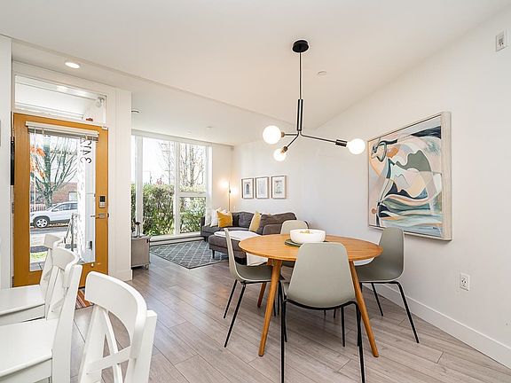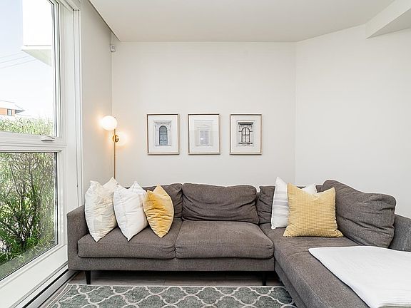 This gorgeous townhome offers a private walk-up entry, 2-beds + den, 3-baths, & 1,102 sqft of sophisticated interior space. Main level boasts a thoughtfully designed open-concept layout w/ wide-plank flooring throughout; powder rm; kitchen w/ luxury appliances, including gas range, excellent cabinet & counter space, island w/ breakfast bar, & sliding door access to the private covered front patio that offers year-round space for al-fresco entertaining. Floor-to-ceiling windows in the living rm offer W-exposure & welcome in abundant natural light. Upper level features primary bed w/ ensuite; secondary bed & bath; den/potential 3rd bed; &, conveniently located laundry. Includes U/G parking, storage locker, & balance of new home warranty. OPEN HOUSE: SAT. OCT. 4 @ 2-4pm