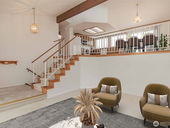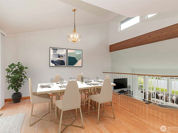 You will love this inviting home with sweeping Views of the Cascades and Mt Rainier. This custom-built light and bright tri-level features a wide-open floor plan with a main floor living room and a cozy fireplace, open beam vaulted ceilings and gleaming hardwood flooring throughout the kitchen and dining room, which opens to the deck overlooking the amazing backyard. A gardeners dream! Fruit trees raised garden beds galore. So much love and care has gone into this property! Master bedroom with walk-in closet also opens to the back deck which spans the back of home. Rec-room down with large laundry and half bath. Oversized garage with shop space and storage. New furnace & water heater. You will love this Home Sweet Home!