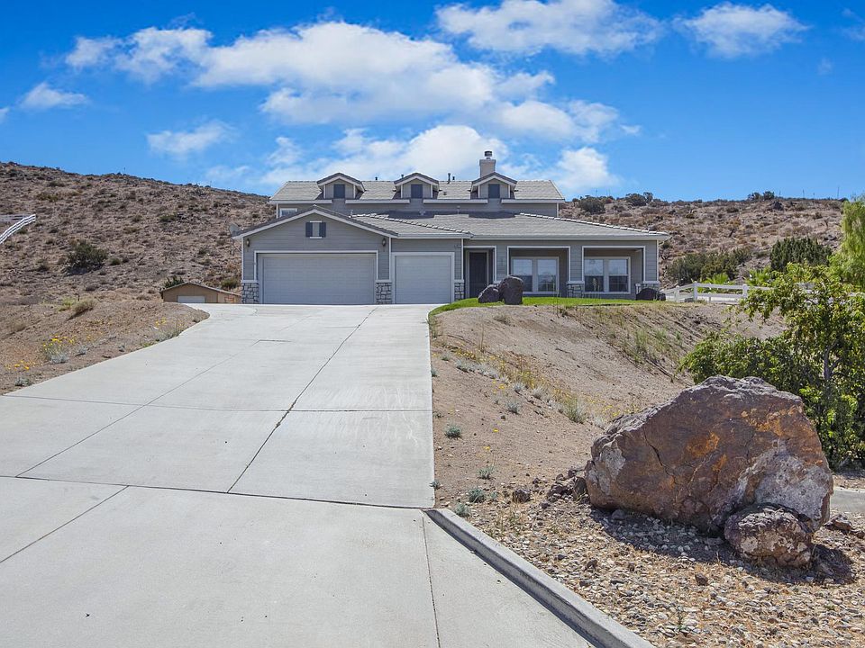 Nestled on a tranquil cul de sac street within the desirable Star Point Ranch, this captivating residence, erected in 2001, boasts an expansive layout sprawling over 2,848 square feet and sits proudly on 8.2 acres of land. Architecturally appealing with its high vaulted ceilings and expansive windows, this turn-key abode masterfully orchestrates seamless transitions between its generously proportioned living spaces. Among its standout features are a luxurious pool graced by 360-degree views of rolling mountains, a spa, comprehensive RV parking equipped with hookups, and an extensive half-acre horse corral complemented by a half barn, hay shed, tack room, and a covered stall. This exceptional property houses 4 bedrooms and 3 bathrooms, each designed to enhance productivity and spark creativity. Bathed in sunlight, the home radiates warmth and welcome, with each room framed in picturesque views. The kitchen, a culinary haven, is outfitted with granite countertops, a central island, ample cabinetry, and a spacious pantry. The master suite is a realm of relaxation featuring a walk-in closet and a luxurious ensuite equipped with double sinks, a spa bathtub, and a standalone shower. This residence is in perfect unity with its natural landscape, offering panoramic mountain vistas, a serene swimming pool and spa, and a suite of outdoor amenities, making it an idyllic retreat.