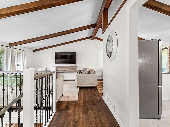 UPDATED & move-in ready, beautifully RENOVATED home in HAMPTON TWP offers modern charm & comfort! OPEN CONCEPT main level w/NEW/er engineered hardwood floors. Spacious living room w/cathedral ceilings & abundant natural light. Upgraded kitchen boasts newer stainless-steel appliances, while dining area opens onto a deck overlooking a private backyard w/patio below & fire-pit. Main level primary bedroom w/private en-suite bath, 2 add’l beds & fully REMODELED BATHROOM (2023). The lower level features cozy family room w/wood-burning fireplace and separate outdoor patio entry, a BONUS GAME ROOM w/FULL BATH w/its own entry/exit, laundry room & storage. Amazing flexibility for IN-LAW SUITE, HOME OFFICE, GYM, PLAYROOM, CRAFT AREA OR HOME BUSINESS & more! Fresh PAINT, NEW ROOF & Remodeled KITCHEN 2024, New Driveway 2022. GREAT LOCATION just minutes from PA Turnpike, Rt 8, restaurants, shopping, & more. HAMPTON SCHOOLS & POFF ELEMENTARY.