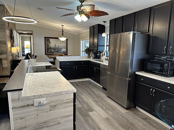 Active 55+ Community - Wonderfully fully updated home on a beautiful tree lined street offering modern comfort and timeless charm! Enjoy peace of mind with a 2025 washer/dryer, refrigerator, dishwasher, stove/range, HVAC, and a durable metal roof. The 2023 water heater and 2022 sprinkler system add extra convenience. Inside, the primary bath features elegant marble countertops, and the home comes fully furnished completely turn-key! A versatile bonus room offers extra closet space and a private entrance, perfect for guests or an office. Relax on the 22 x 9 enclosed front porch. Beautiful magnolia and mahogany trees enhance the inviting front yard.