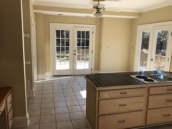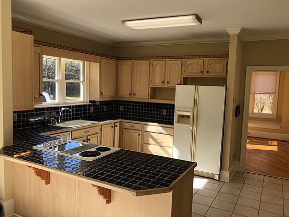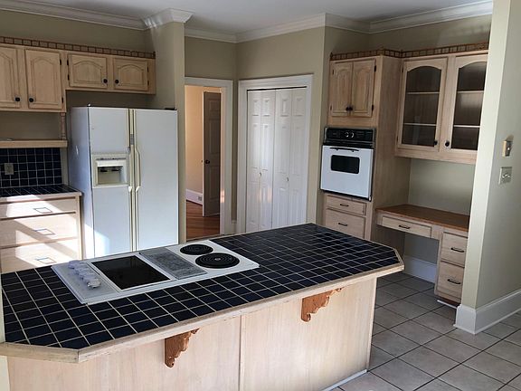 2400 sq ft home on 1+acre wooded lot. Walk to shopping. Tile kitchen with cooktop island and eating area. Hardwood dining room. Tile sun room and carpeted family room with wood burning fireplace. Upstairs carpeted bedrooms. Large master has brick wood burning fireplace and separate tub and shower. 600 sq ft unfinished basement.
