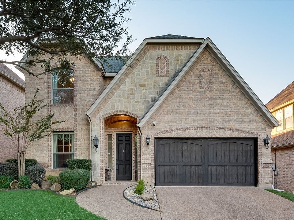 Welcome home to this custom gem located in the peaceful neighborhood of Grayson Villas. The thoughtful design of this home features three bedrooms and two and a half baths. The primary suite is on the first level and two beds and a spacious game room up. Primary features dual sinks, jetted tub, a large shower and walk in closet. The kitchen has a great eat-in bar area, custom cabinetry and granite countertops. The cozy and inviting living room features a stone gas fireplace and a light and bright view of the pergola covered back patio. Hardwood floors, crown moldings, abundant storage and true custom finishes set this home apart from the rest. Minutes away from walking, biking or jogging with direct neighborhood access to the Cottonbelt Trail. Home has been well maintained and has a new roof.