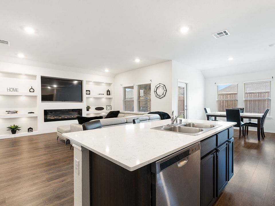WELCOME HOME TO This STYLISH MODERN CONTEMPORARY FEEL OPEN CONCEPT HOME! Nestled in the highly sought-after TRAILWIND COMMUNITY, this beautifully maintained home perfectly blends thoughtful design with modern elegance. EVERY DETAIL HAS BEEN CAREFULLY CURATED TO OFFER BOTH FUNCTION AND FLAIR, CREATING A WARM, INVITING ATMOSPHERE THAT FEELS LIKE HOME THE MOMENT YOU WALK IN. Step inside to discover a BRIGHT, OPEN-CONCEPT FLOOR PLAN WHERE THE LIVING ROOM, DINING AREA, AND KITCHEN FLOW SEAMLESSLY TOGETHER—IDEAL FOR EVERYDAY LIVING AND EFFORTLESS ENTERTAINING. A MODERN ELECTRIC FIREPLACE with sleek shelving, built in LED lights and a TV feature wall sets the tone for cozy gatherings and contemporary charm. The CHEF-INSPIRED KITCHEN boasts granite countertops, stainless steel appliances, and abundant cabinetry to keep everything STYLISHLY ORGANIZED. Retreat to the spacious master suite, complete with a walk-in closet and a private en-suite bath for your own SERENE ESCAPE. Secondary bedrooms provide comfort and flexibility, perfect for family, guests, or a home office. OUTSIDE, ENJOY AN OVERSIZED BACKYARD WITH A COVERED PATIO, OFFERING THE PERFECT SPACE FOR RELAXING EVENINGS OR WEEKEND BARBECUES. With true pride of ownership evident throughout, this home is move-in ready and waiting for its next chapter. CONVENIENTLY LOCATED NEAR SHOPPING, DINING, AND MAJOR COMMUTER ROUTES, YOU’LL LOVE THE EASY ACCESS TO MESQUITE, DALLAS, AND BEYOND. IMPECCABLE. INVITING. INSPIRED. THIS TRAILWIND TREASURE IS EVERYTHING YOU’VE BEEN LOOKING FOR!!! SCHEDULE YOUR SHOWING TODAY!