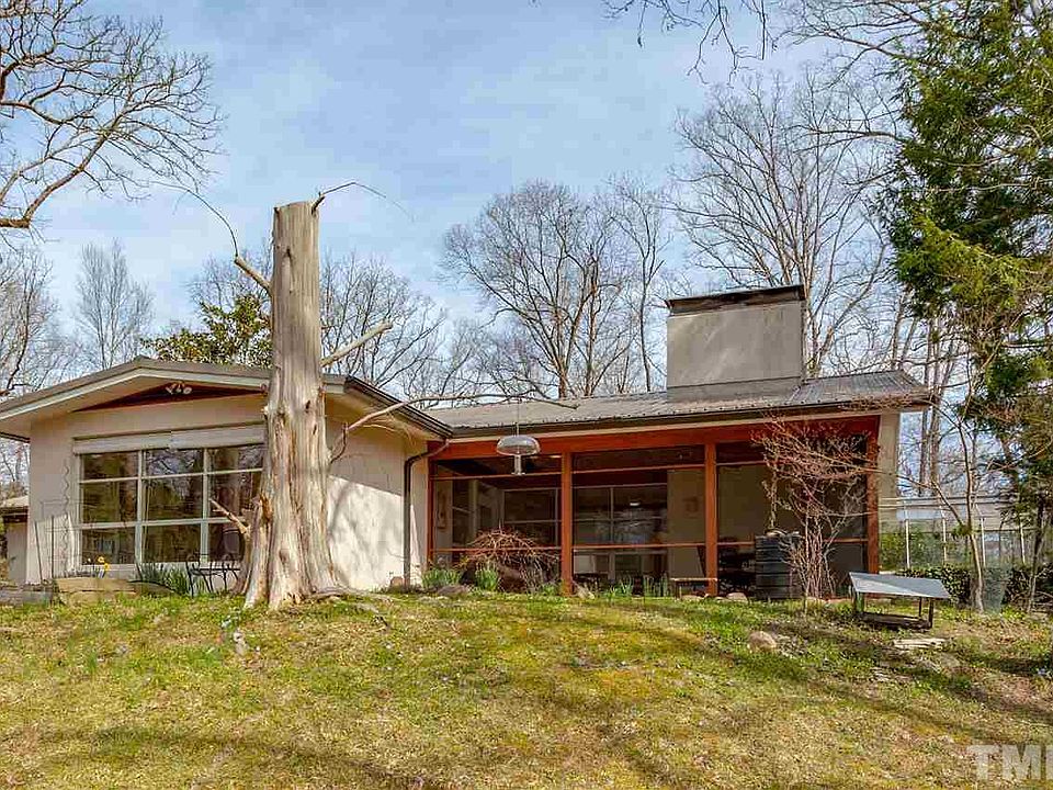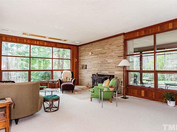 One of a kind Hope Valley classic Mid Century Modernist designed by John Latimer, recognized by NCModernist.org You will love the feel of this home, the warmth of the custom cherry woodwork, the stone fireplace, and huge walls of windows. Plus a greenhouse, covered patio, screened porch, carport, workshop, and a 60 foot in-ground pool that melts into the landscape. 4 bedrooms, 2.5 bathrooms, easy access to Duke, UNC, and I-40. Come see why mid century modernist homes are so popular. May be subdividable.