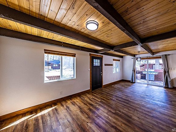 Over $50K price reduction! Don't miss the opportunity to own this Tahoe chalet that has been completely updated with a perfect blend of mountain modern design. Beautiful craftsmanship throughout with stunning granite counter tops, knotty alder wood cabinets, accent tile flooring in both bathrooms, and waterproof laminate wood flooring throughout, there is nothing left to do but come enjoy all that Tahoe has to offer. You will love the open layout and exposed beams. This gorgeous home is placed on a large, level lot in a quiet South Lake neighborhood just a few minutes from Lake Tahoe, Heavenly Resort, restaurants, and shopping. The spacious backyard is fully fenced with a storage shed in the back corner. The mountains are calling and this is your perfect mountain retreat.