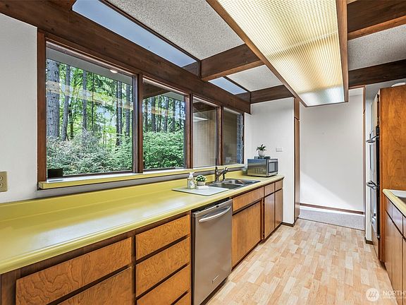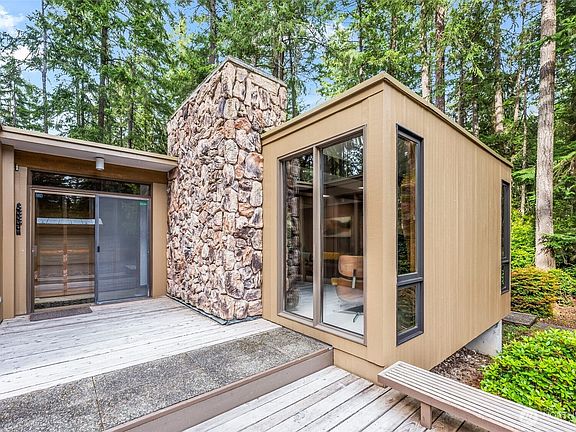 Discover this super cool Northwest contemporary home with a retro mid-century vibe, tucked away on 2.0+ private wooded acres in sought-after Artondale area. Built in 1973, this solidly constructed gem offers endless potential—add a shop, create a DADU, or craft your own peaceful wooded retreat. The main floor primary suite for easy one level living, downstairs ideal for guests or multi-generational living! The setting is serene-towering evergreens, dappled in sunlight, yet just minutes to top-rated schools, local parks, vibrant waterfront activities, and the charming Maritime town of Gig Harbor—voted one of the best places to live in the U.S. This rare opportunity delivers character, location and lifestyle! A slice of the Pacific Northwest!
