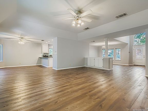 Welcome home to this beautifully maintained 5-bedroom (Primary bedroom is downstairs), 3.5-bath residence tucked away on a quiet cul-de-sac street. Sitting on an oversized .37 acre lot with mature trees! A long driveway with an additional parking pad leads to a detached 3-car garage. The home boasts a bright and welcoming floor plan designed for both comfort and entertaining. The updated kitchen features elegant granite countertops, a mirrored backsplash, and upgraded stainless steel appliances - ready for everything from weeknight dinners to holiday baking marathons. Throughout the home, energy-efficient, triple-paned windows have been installed-enhancing both soundproofing and climate control for year-round comfort. 4 generous sized bedrooms plus huge game room upstairs means there's room for everyone! Step outside to your heavily treed backyard oasis, where a Trex deck awaits-complete with built-in seating, extra electrical outlets, and bracing for a hot tub. Whether you're relaxing under the canopy of trees or hosting family and friends, this outdoor space is the perfect retreat. Conveniently located off 1604 and Redland Oaks with ez access to Hwy 281, shopping and restaurants are just around the corner. Come see!