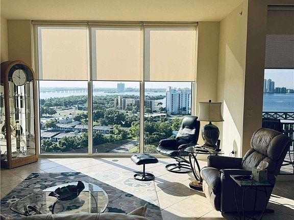 Welcome home to your dream condo at North Star Yacht Club. Experience luxury living at its finest in this stunning 12th-floor, Turnkey condo located in the prestigious North Star Yacht Club. Offering unparalleled views of Downtown Fort Myers, the Caloosahatchee River, and the canal, this property also provides convenient access to nearby dining, bars, and water sports. This 2-bedroom, 2-bath condo with a versatile den/bedroom features soaring 12-foot ceilings, the highest below the penthouse, adding a sense of grandeur and openness to the space. The chef’s kitchen is a true showstopper, complete with an oversized island, perfect for entertaining or crafting culinary masterpieces. Immerse yourself in resort-style amenities spanning 15,000 square feet, including a clubhouse, theater, fitness and aerobics center, steam and locker rooms, a heated pool, and a spa, pickleball, bocce ball and more . Enjoy waterfront living with the option to lease a slip at the marina or take a leisurely stroll to one of the nearby waterfront restaurants. Explore the revitalized River District of Downtown Fort Myers with ease, thanks to the free seasonal trolley, and discover over 60 restaurants, shops, galleries, and theaters in this vibrant community. This beautiful condo also features floor-to-ceiling windows with sliders leading to the lanai, providing breathtaking views of the city, river, and canal. Surrounded by lush waterfront grounds and world-class amenities, this is a rare opportunity to redefine luxury living. Don’t miss the chance to make North Star Yacht Club your new home.