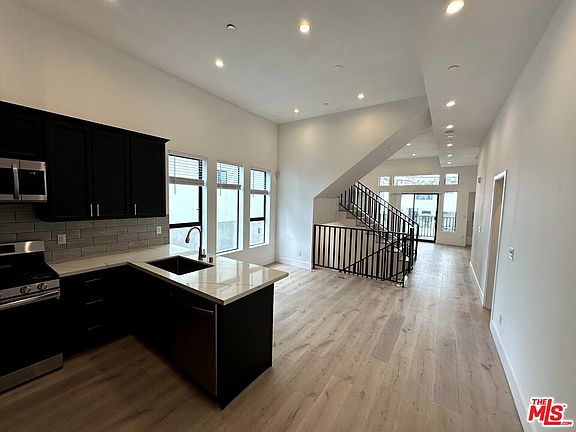 Beautiful Modern Luxury 4 Story Townhome - 3 bed - 4 bath with office/studio and Rooftop Deck in Silver Lake. Step into modern elegance with this 2021-built 4-story luxury townhome nestled in the heart of Silver Lake. This stunning triplex unit features 4 bedrooms, 4 bathrooms, and a spectacular rooftop deck, offering breathtaking views of the LA skyline and the Hollywood sign.The home welcomes you with a bright and spacious open floor plan, boasting high ceilings and luxury vinyl flooring. Each level is enhanced by recessed lighting and high-end finishes, creating an ambiance of sophisticated comfort. Balconies on each floor allow for seamless enjoyment of the vibrant city energy.The contemporary kitchen is a chef's dream with sleek cabinetry, pristine white quartz countertops, and stainless-steel appliances. The dining area adjoins a large living room, complete with a sliding glass door that opens to the first of several balconies. The second floor houses two well-appointed bedrooms, a shared bathroom, laundry convenience with a stackable washer and dryer, and yet another balcony for private outdoor enjoyment. Ascend to the private sanctuary of the top-floor master suite, featuring a walk-in closet, an en-suite bath, and an expansive private roof deck perfect for entertaining or peaceful relaxation.The ground floor offers versatility with an additional room and en-suite bath, featuring a private entrance that can serve as a home office or guest suite.Experience the luxury of double-pane picture windows throughout, framing iconic views and flooding the space with natural light. The unit comes with two assigned parking spaces in a gated parking.Located in the desirable Silverlake area, close to Rampart Village and Echo Park, and just a short distance from downtown. Enjoy easy access to shopping, dining, and entertainment, with the convenience of the 101 freeway just moments away. This is not just a home; it's a lifestyle for those who seek urban living with a touch of luxury.