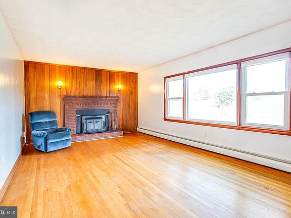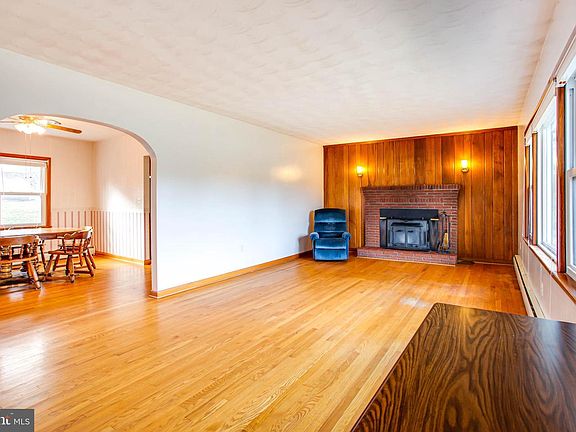 All brick rambler with Texas sized detached garage for 5 cars located on cleared level 1.15 acre lot. Detached garage has 5 bays plus workshop area, electric and water, paint bay, concrete floor throughout (one area has a pit in concrete for working underneath cars. Home has hardwood floors, wood stove insert in fireplace, sunroom addition which leads to large deck, 3 bedrooms, 1 bath, plus a partially finished basement for additional space. Stairs lead to floored attic for tons of extra storage.... Home needs updating... Price reflects condition.