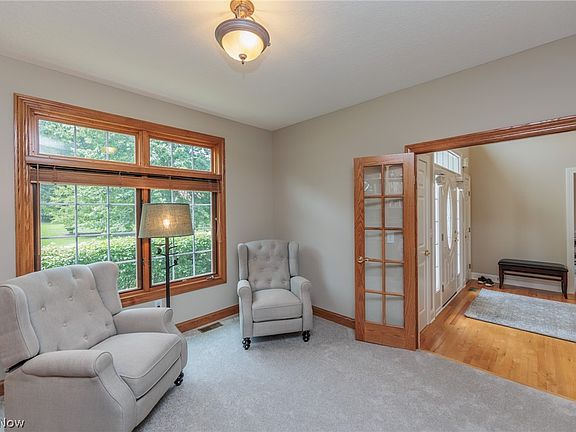 You will fall in love with this beautiful, 5 bdrm, 3 1/2 bath home, custom built in 2005. Located on 1 Acre, it has a wonderful open floor plan, 2 story Foyer and Great room with gas fireplace. Hardwood floors in foyer, hallway and kitchen. Warm and inviting, fully appliance kitchen, double oven, maple cabinets, solid surface counter tops, Nice size 5X6 walk-in pantry. Breakfast bar, dinette area looking out into the beautiful back yard with double tiered patio. Awesome 1st Flr laundry area with 1/2 bath, adjacent to extra large side load 3 car, fully insulated garage. 1st Floor master suite with double vanity sinks, a spa style bath tub and huge walk-in closets. Wonderful floor plan. The other 4 bedrooms are upstairs, one with it's own private bath (guest room). 2 other bedrooms share a jack & jill full bath and the 5th bedroom is very large with closet, could also be used as a play/craft/rec room area. Formal dining room and office with beautiful built in shelving & French doors located on main floor. The 14 course, unfinished basement has been professionally waterproofed and comes with a lifetime guarantee. Such a beautiful setting, private, in a wonderful location, like living in the country but near all the city amenities. So many more special features. Updates, carpet and interior paint 2024, roof, siding, gutters 2022, furnace, AC, well pump, AIO system, water softener 2020, water tank 2019. Move in ready.