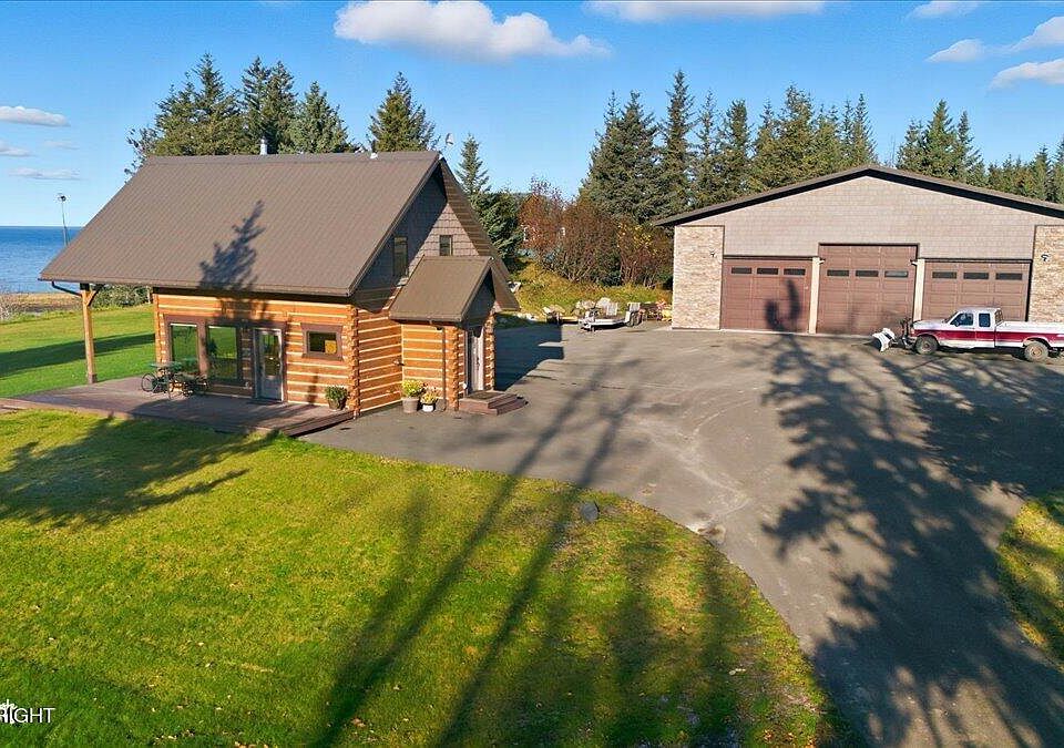 Aviator's Dream Property at Anchor River Airpark!Experience the unmatched convenience of private runway access paired with luxurious Alaskan living. This immaculate property sits directly within the sought-after Anchor River Airpark community and features a top-tier hangar capable of accommodating up to three airplanes--a rare find on the Kenai Peninsula.The beautifully crafted high-end log cottage showcases sweeping, unobstructed views of the Cook Inlet, Anchor River, and surrounding wilderness. Inside, a true chef's kitchen awaits, outfitted with stainless-steel appliances, premium finishes, and everything needed for entertaining. The living room is the showpiece of the home, boasting soaring ceilings and dramatic floor-to-ceiling windows that capture a full 180-degree panorama of the stunning landscape. Aviation enthusiasts will appreciate the expansive 2,400 sq. ft. hangar/shop, complete with heated floors, a full bath, laundry, and removable posts for effortless airplane access. Whether storing aircraft, vehicles, or all the toys an Alaskan lifestyle demands, the space is designed for maximum function and flexibility. The main level of the residence includes a laundry room and half bath. Upstairs, the inviting primary suite offers a king-size bed, cozy sitting area, additional twin bed, and full bath perfect for guests or extended stays. Step outside onto the generous deck to enjoy picnics, sunsets, and evenings around the fire pit while taking in the world-class views. An incredible bonus: The adjacent 2.52-acre parcel complete with a prime building site and paved access is also available for purchase. Build your dream main home on the adjoining lot and use the existing log cottage as a guest cabin, rental, or pilot retreat. Endless possibilities for expanding your aviation estate. An unbeatable location: direct access to the private airstrip, minutes from world-class River and Inlet fishing with nearby boat launch services, beachcombing along Anchor Point's iconic shores, wildlife viewing, and endless sightseeing. All just 20 minutes from Homer for dining, shopping, and year-round adventures. This is more than a home it's a lifestyle. Fly in, relax, and take in the best of Alaska from your own private airpark retreat.