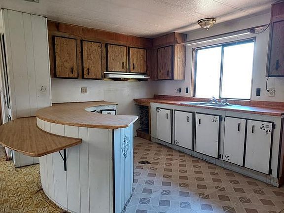 This 1978 doublewide manufactured home is located in Oregon Shores subdivision in Chiloquin. 3 Bedrooms, 2 bathrooms with 1,812 sq. ft. Carport, fenced back yard, enclosed porch and a 960 sq. ft. shop! It has 2 separate lots with a total of .61 acre. New septic tank was installed in 2022. This is a Fannie Mae HomePath property.