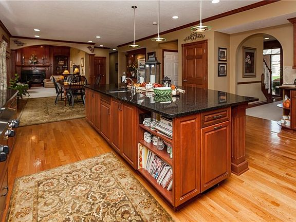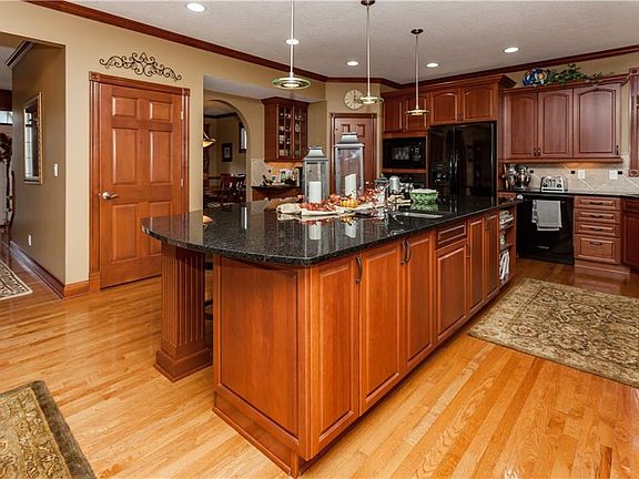 1 owner home immaculately cared for. On cul-de-sac with private back yard. Great updates and designs throughout home. Kitchen includes large island with a formal dining space. Open floor plan kitchen opens to eating area and living space. Stunning wood work detail throughout the home with built ins in den, dining and living room. New covered deck with wood ceiling and stone for your outdoor oasis. 4 Large bedrooms upstairs. 2 private bathrooms plus Jack and Jill bathroom. Master bathroom is spacious and has large walk in closet attached. **Lower Level is finished! Wet bar has unique wood pattern and shelving. It is sure to be the eye catcher of your party. Theater room will be a great spot to watch your favorite games. Additional rooms in lower level could be used for bedroom, gym and finished storage space. Lower level walks out to private back yard. Great tree cover and finishes for time outside with family and friends.