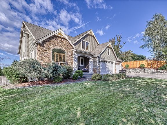 Beautiful Point Fosdick home. Large lot, 3 bedroom 2 1/2 bath home, 2854 Sq. FT with partial view of the Olympic Mountains. Lovely entrance with beautiful Hickory hardwood floors. Large office with with walk-in closet. Powder room. Living room with 24 ft. vaulted ceiling, see through gas fireplace opens to bright Dining room and chef kitchen with granite and new oven, open French doors to family room & office. Up stairs to Primary Bedroom with see through gas fireplace into spa bathroom, large walk-in closet. 2 additional bedrooms and full bath off hallway, lots of storage. Fully fenced backyard with beautiful water feature, large deck for outdoor entertaining, corner area perfect for raised gardens. Oversized 3 car garage .RV Parking