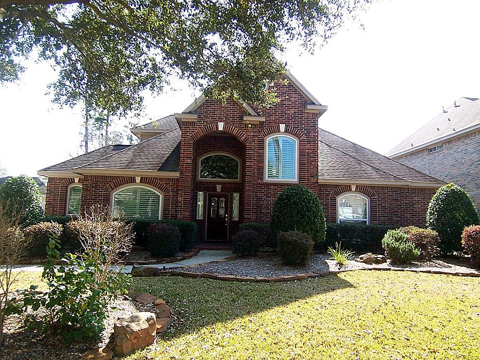 FIVE BEDROOMS! Master suite, two secondary bedrooms and gameroom down! Two bedrooms+hollywood bath up. Stunning interior with marble entry, tiled family room, breakfast & kitchen, plantation shutters, extensive crown molding! Magnificent island kitchen boasts granite counter tops,tumbled marble backsplash,upgraded cabinetry,SS 5 burner gas cooktop+double convection oven! Gameroom down w/ fireplace! FULL HOUSE GENERATOR! ALL brick exterior,sprinklers,tankless water heater! Large covered patio!