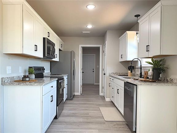 MOVE IN READY NEW CONSTRUCTION – $0 DOWN with USDA Financing! Quality-built, Fortified Gold all-brick 3BR/2BA home in Powe Estates on a spacious lot. Split floor plan with eat-in kitchen open to the main living area featuring an all-electric fireplace. Tall ceilings in the living room and primary suite, LVP throughout, and stainless steel stove, microwave, and dishwasher. Additional features include a front porch, energy-efficient windows, and a soaking tub with a Bluetooth exhaust fan. 15 SEER HVAC with heat pump. Includes structural warranty and 2-10 Builder’s Warranty. Earnest money $1,000. All contracts are subject to the Builder’s Addendum. Buyer/Buyer's agent to verify all measurements and information.