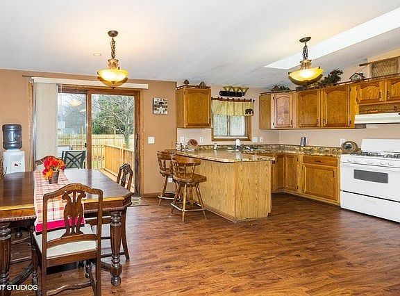 Great opportunity to live like you are on vacation everyday~this 3 bedroom/2 bath home is looking for new owners. Nestled on a cul-de-sac, this cozy home has an open floor plan with the living room adjacent to the kitchen/dining room area, overlooking the deck & fenced-in back yard. Living room has wood burning stove. Master suite has private bath plus walk-in closet. Spacious laundry room leads to 2 car garage with work-area. Shed being sold as-is. Seller is offering $2,000 to buyer toward closing costs or new appliances. All dimensions are approximate.