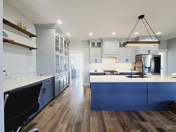 Discover your own slice of paradise with this stunning country property, offering nearly 8 acres of serene beauty and endless possibilities. This versatile estate features a private well, an up-and-coming orchard, an established hay field, small vineyard and a spacious chicken coop; making it perfect for agricultural enthusiasts and animal lovers alike. This Barn dominium-style home includes a spacious 65 x 50 RV/2 car garage pull through garage, complete with a wood-burning stove and ample space for multiple vehicles, with unfinished dual lofts for additional storage, business ventures or creative projects. Inside the home, you’ll find an open-concept living area that seamlessly blends comfort with style. The gourmet kitchen boasts exquisite cabinetry and top-of-the-line appliances, making it a culinary dream. The primary bedroom is conveniently located on the main level, offering easy access and privacy. Enjoy vibrant sunsets and peaceful evenings from the enclosed porch, ideal for late-night porch swings