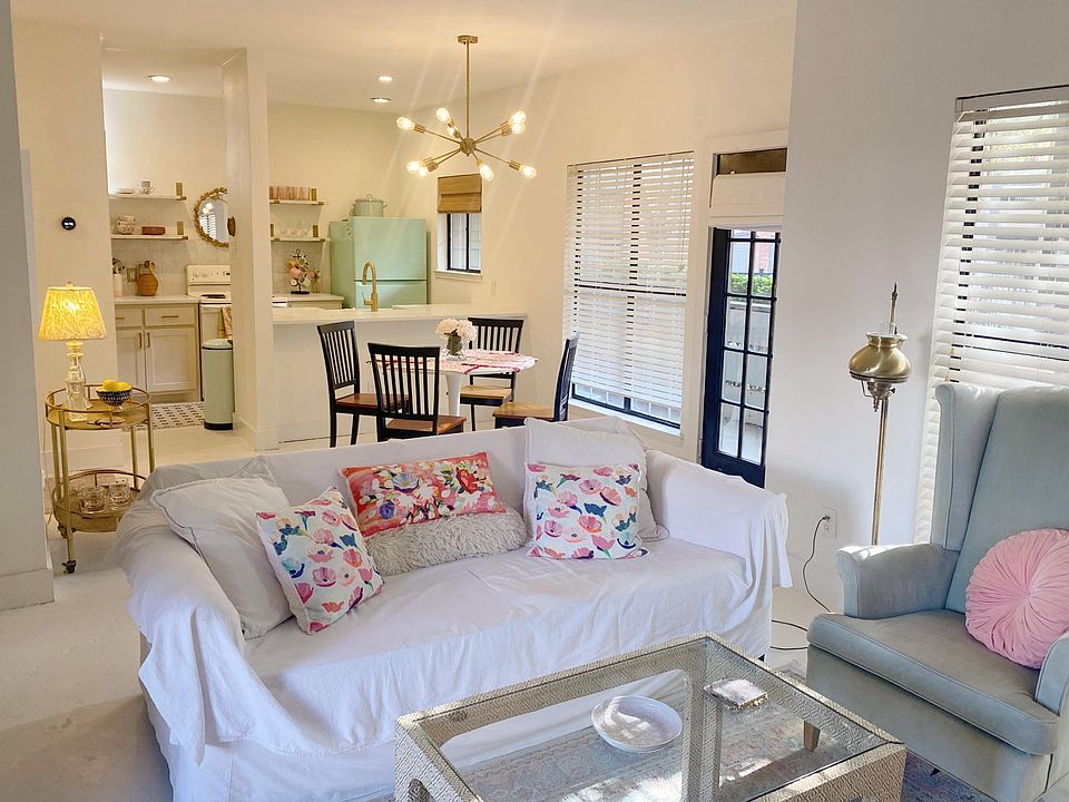 - Exterior features: Bicycle storage, Fully stocked kitchen, Heating system: Forced Air, Iron & ironing board, Two smart TVS, chic decor