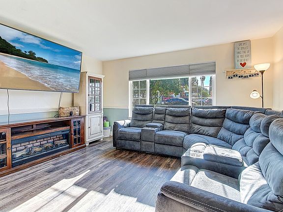 Beautiful single-family home featuring 3 bedrooms, 2 bathrooms, and 1,533 sq ft of comfortable living space. Remodeled kitchen showcases granite countertops, stainless steel appliances, abundant cabinetry, and a charming bay window that fills the space with natural light. Newer wood-look vinyl flooring flows throughout the home, complemented by ceiling fans for added comfort. Major updates include newer A/C, FAU, and water heater, along with dual-pane windows. Both bathrooms have been updated with newer vanities, modern shower enclosures, and a newer shower door in the primary bath. Step outside to a private backyard with a fenced pool—perfect for relaxing or entertaining. Part of garage has been converted to a work out room. Close to schools, shopping and freeways.