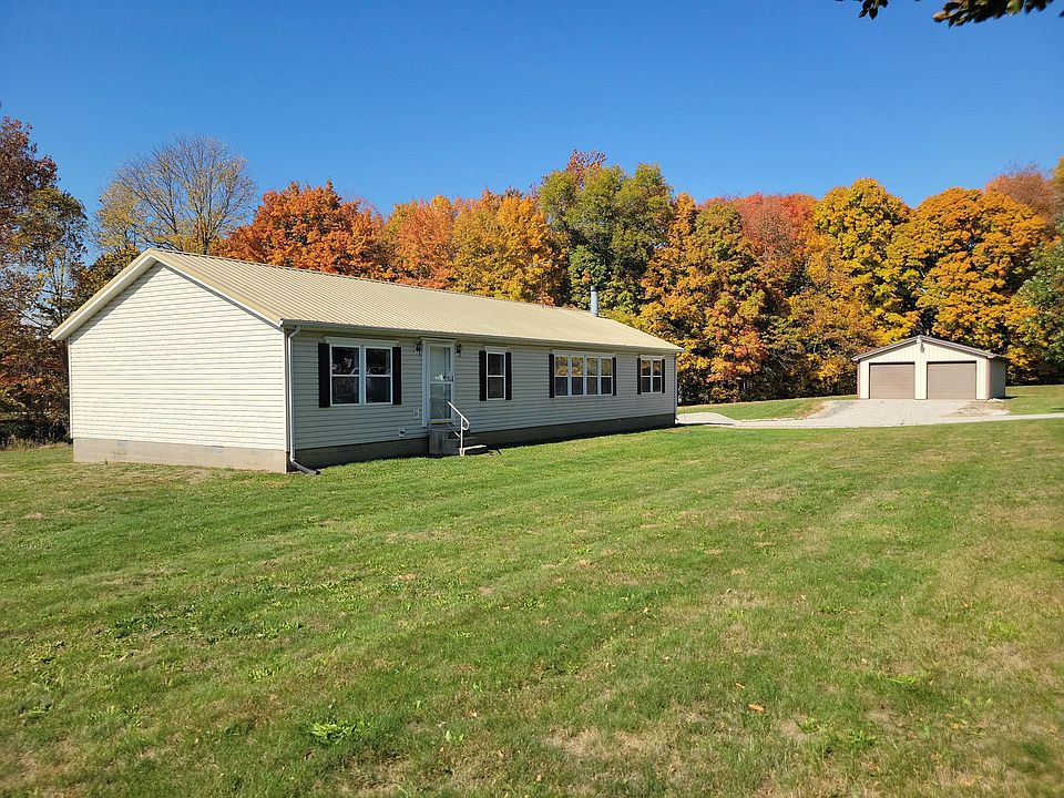 Welcome to this charming 3-bedroom, 2-bath home set on a sprawling 2.01-acre lot, offering both space and privacy. This property, being sold as-is, includes all appliances and everything within the versatile pole barn, which features three garage doors - ideal for vehicle storage, a workshop, or hobby space. Inside, enjoy a comfortable layout with spacious bedrooms and well-appointed bathrooms. Experience the beauty of rural living with convenient access to local amenities, making it the perfect blend of country charm and practicality. Don't miss out on making this home YOURS!