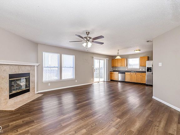Charming home in sought-after Adler Grove offers everything you need for comfortable and stylish living. Step inside to a large foyer and a wide open floor plan. The spacious great room is open to the kitchen and nook area and includes a gas log fireplace. All appliances remain including stainless steel kitchen appliances, washer and dryer. There is also a water softener. The primary suite is nicely sized and can accomodate any size bed. A walk-in closet and garden tub make it extra special. Recently painted, newer vinyl plank flooring and brand new carpet make this home move-in ready. The sliding glass door in the kitchen/nook area leads out to a large deck and privacy-fenced backyard. The roof was replaced in 2016. The two-car garage adds extra storage. Community playground and walking trails. Location is convenient to the interstate, shopping, dining, and schools.