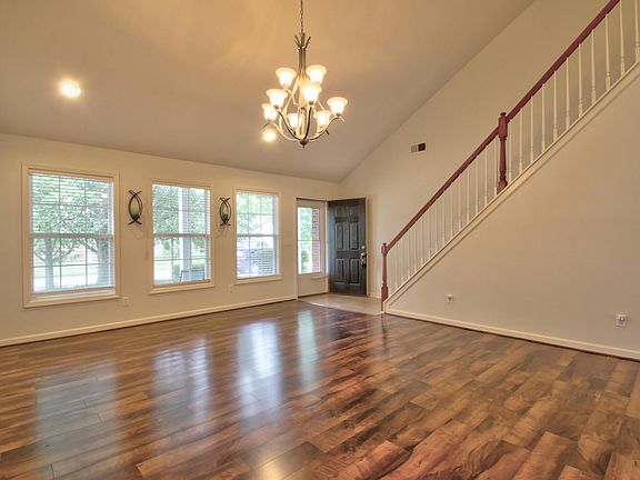 Fantastic opportunity for well maintained and updated home backing to tree line! Great layout with vaulted ceilings and open floorplan. Covered porch entry into big Living room with open stair. Wonderful kitchen with granite, newer stainless steel appliances & pantry. Sunny Dining area overlooks private backyard, open to the Family room with fireplace. All electric; HVAC has been recently replaced along with hot water heater, seller replaced all carpet with laminate flooring. Nice laundry room comes equipped with sink & LG Thin washer/dryer. Guest bath with granite counters, tile floor. Huge Primary BR with spa type bath, separate tile shower & big soaking tub, dressing table, walk in closet. All bedrooms are spacious with plenty of closet space! Garage is extra roomy with space for 3 cars(tandem park two) or a home gym or workshop! Perfect location with easy access to park with walking trail, interstate, dining, shopping and entertainment!