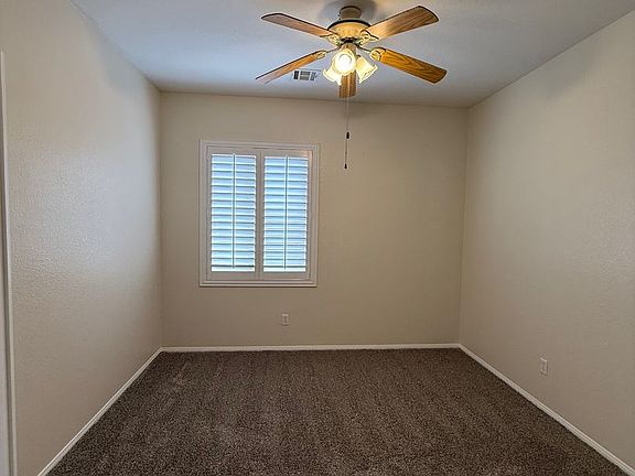 This single-story residence in the gated Northshore Community offers three bedrooms, two bathrooms, a den/office, and a two-car garage. Freshly painted and new carpet in the living room, den and primary suite. Kitchen enhancements include stainless steel LG appliances, granite countertops, and upgraded cabinetry. The eat-in kitchen overlooks a landscaped backyard, which is complemented by an above-ground spa. An office, suitable for use as a fourth bedroom, adds versatility to the floor plan. Additional areas feature formal living and dining rooms arranged in an open-concept design. The primary suite has direct access to the backyard, while the primary bathroom features granite surfaces, dual sinks, and a jetted bathtub and is separate from the other bedrooms. In addition, his home features solar panels, enhancing its overall energy efficiency. The property enjoys close proximity to all Las Vegas has to offer.