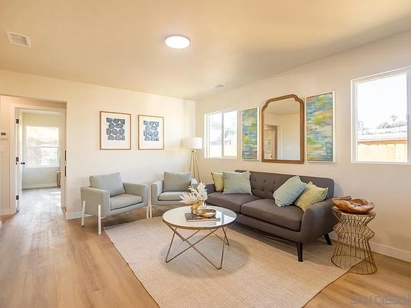 Welcome to this elegantly remodeled, move-in-ready single-level home! Situated on a spacious 12,300 sq. ft. oversized lot, this upgraded residence offers not only comfort and style but also incredible potential—perfect for adding income-producing units or an ADU. Designer touches throughout include luxury vinyl plank flooring, a fully renovated kitchen and bathrooms with sleek quartz countertops, and brand-new stainless steel appliances. The primary suite features a walk-in closet, and the home is enhanced with recessed lighting, new windows, and central forced heating and air conditioning for year-round comfort. Enjoy outdoor living with a covered patio, and appreciate the convenience of in-home washer/dryer hookups. Located on a quiet cul-de-sac in the desirable Redwood Village neighborhood, this home offers both tranquility and future investment opportunity.