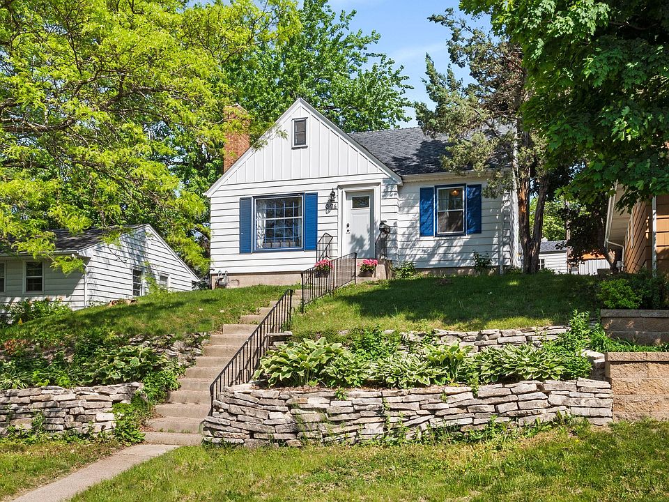 Bright and Sunny 1942 Cottage located right in the center of Robbinsdale! This move-in-ready home features beautiful hardwood floors, a spacious living room with wood burning fire place opening up to the dining room with handsome corner built-ins. The efficient and modern kitchen is updated with SS appliances, tiled floor and backsplash and updated cabinetry. There are two bedrooms on the main level next to the full bathroom with gorgeous, original mid-century tile. The lower level offers the perfect living room/flex space and 3/4 bath. Located just blocks away from Victory Memorial Park and Theodore Wirth Regional Park, this location cannot be beat. Come check this out today!