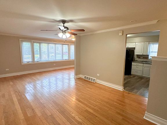 This 3-bedroom, 1.5-bath home offers 1,210 square feet of well-lit, functional living space with timeless charm and modern upgrades. You're welcomed by an expansive living room anchored by a stunning row of bay windows that flood the space with natural light and offer a beautiful view of the front yard. The main level flows into a designated dining area and a well-appointed kitchen featuring modern appliances, tile backsplash, and ample cabinet storage. Light hardwood floors run throughout the main and upper levels, creating a cohesive and inviting feel. Upstairs, you'll find three spacious bedrooms, each with large portrait windows and generous closet space, plus a full bathroom shared among them. The finished basement offers additional living space with tile flooring, more natural light, a half bath, and a mechanical room equipped with built-in shelving and dedicated circuitry-ideal for tools, storage, or a small workshop setup. Outside, enjoy a private driveway with an awning, a well-kept yard, a large shed for extra storage, and a charming bench swing perfect for relaxing outdoors. This brick home blends space, style, and comfort-perfect for homeowners looking for a move-in-ready property in a quiet, established neighborhood.