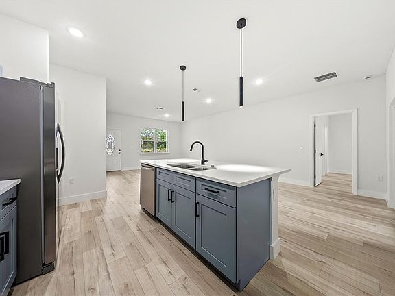 Welcome to this stunning, brand-new single-family home offering modern design, quality finishes, and a spacious open-concept layout. Thoughtfully designed for comfortable living and effortless entertaining, this home features four generously sized bedrooms and two elegant bathrooms. The chef’s kitchen is equipped with stainless steel appliances, a functional island, and timeless neutral finishes, flowing seamlessly into the bright and airy great room, perfect for gatherings or everyday relaxation. The luxurious primary suite offers walk-in shower, dual vanities with quartz countertops, and a large walk-in closet. Both bathrooms showcase floor-to-ceiling tile and premium fixtures, highlighting the home's exceptional craftsmanship. Additional features include a dedicated laundry room, a covered lanai ideal for outdoor enjoyment, and a spacious two-car garage offering plenty of room for storage. Situated on a 0.23-acre lot in a desirable and quiet neighborhood, this move-in ready home perfectly blends comfort, style, and functionality. Don’t miss the opportunity to make this beautiful new home yours. Schedule your private showing today!