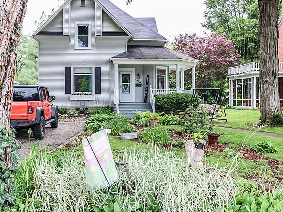 Step into the charm of a thoughtfully maintained home where original character meets comfortable living. From the welcoming front porch to the beautifully crafted staircase with detailed banisters, every corner reflects care and craftsmanship. The main floor flows from a light-filled living room to a formal dining space and a cozy kitchen complete with oak cabinetry and a view of the backyard deck. Upstairs are three inviting bedrooms, one with a charming alcove and dormer-style ceiling. A full bath with traditional finishes serves the upper level, while a half bath adds convenience on the main floor. Outside, the backyard offers a peaceful retreat with a raised deck, garden beds, and shaded seating areas. The detached 3.5-car garage with workshop space opens possibilities for storage, projects, or recreational gear. Located in a quiet neighborhood within Mattoon, this home blends historic personality with everyday practicality.