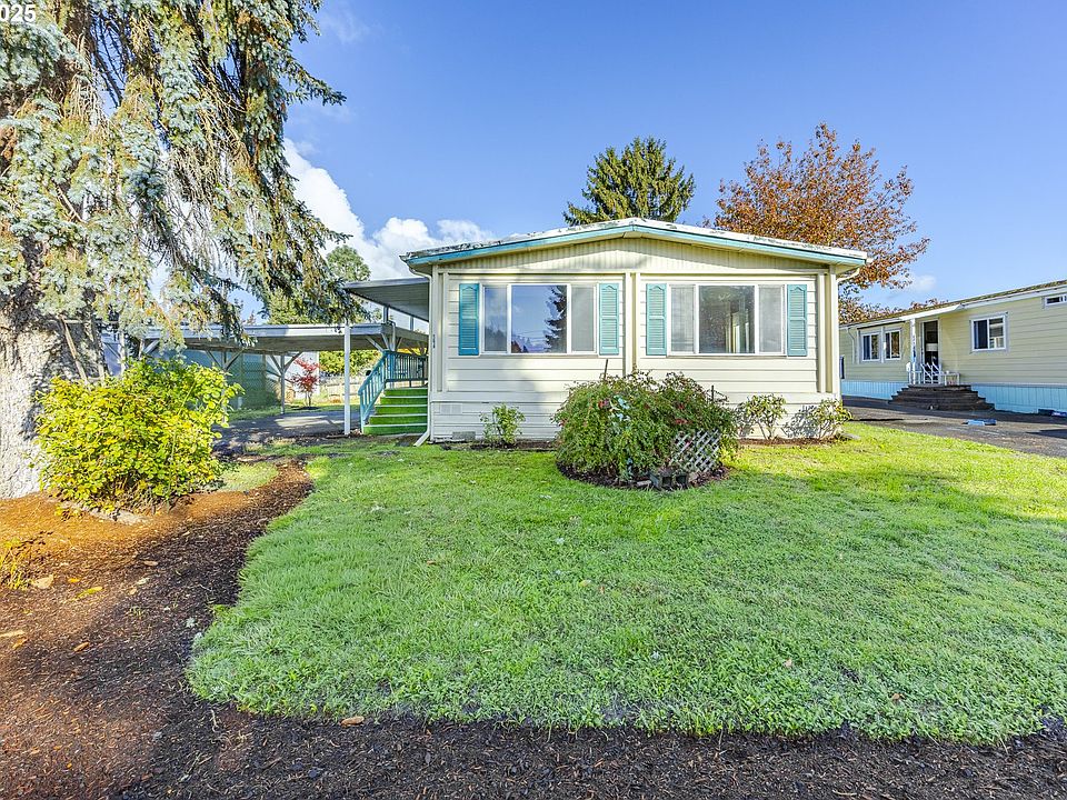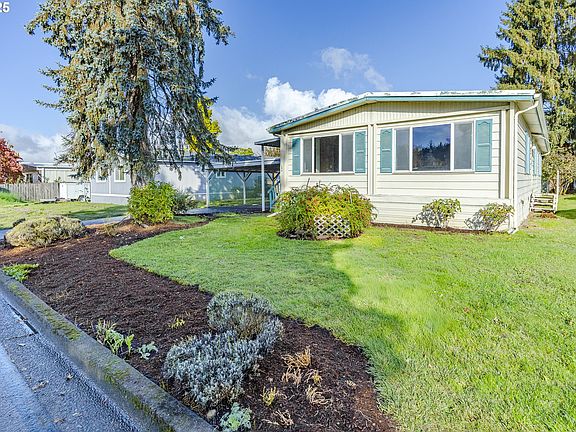 Spacious single-level manufactured home on owned land in a quiet community near Mt. Pisgah trails and parks. This 3-bedroom, 2-bath home offers comfortable living with an open layout, covered front porch, and carport. The yard is a blank slate—ready for your personal landscaping vision or garden. Enjoy the convenience of a community well and septic system, plus nearby access to outdoor recreation. A great opportunity to make this property your own in a peaceful setting close to everything Eugene and Springfield have to offer.