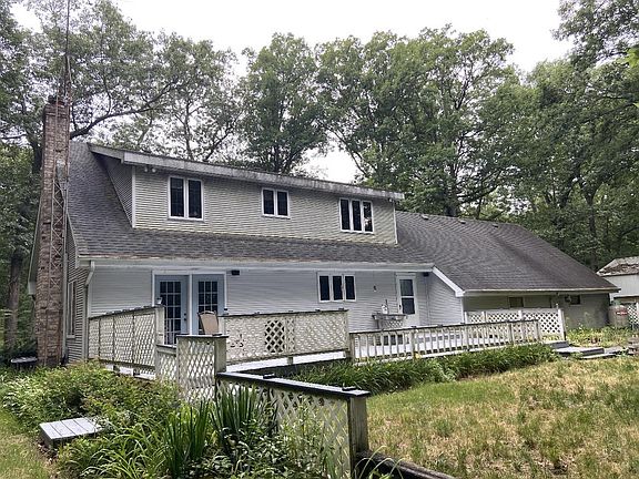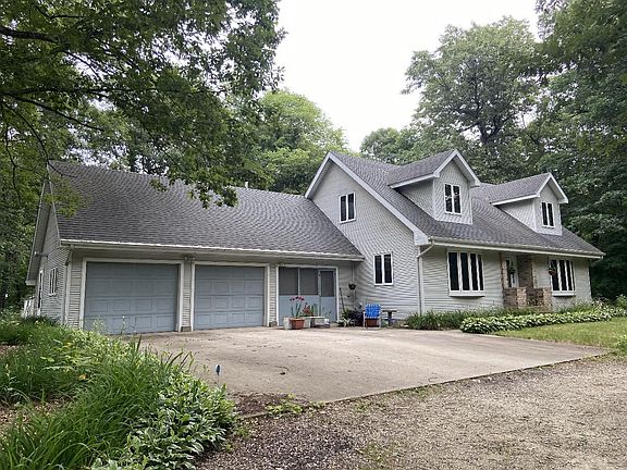 Original owner offers this Rock Solid Cape Cod on hard to find approximately 5 Wooded Acres with outbuilding too! 4 beds/2.5 Baths + 3 car attached garage + outbuilding! Built in '87! Main floor features large living room with arched doorways! Large kitchen with solid cabinets and huge formal dining room! Main floor bedroom (with closet) could be den if needed! 2nd floor features huge master bed w/vaulted ceilings plus walk in closet! 2 large spare beds-one with walk in closet! Full basement features 9 ft ceilings and is finished with huge family room w/electric fireplace with custom brick work, kitchenette or bar, full bath, huge office area plus plenty of storage! 3 Car attached and heated garage! Main floor laundry too! Outbuilding is 40 x 30 with concrete floor, 220 electric and 12 ft garage door--perfect for an RV or other toys! Gorgeous wooded property is located in a small neighborhood setting with private drive--yet totally secluded! The best of both worlds! Huge circle drive leads to front door! Back yard features massive deck with small fenced in area--lot extends deep into wooded area for total privacy! Don't miss this one!