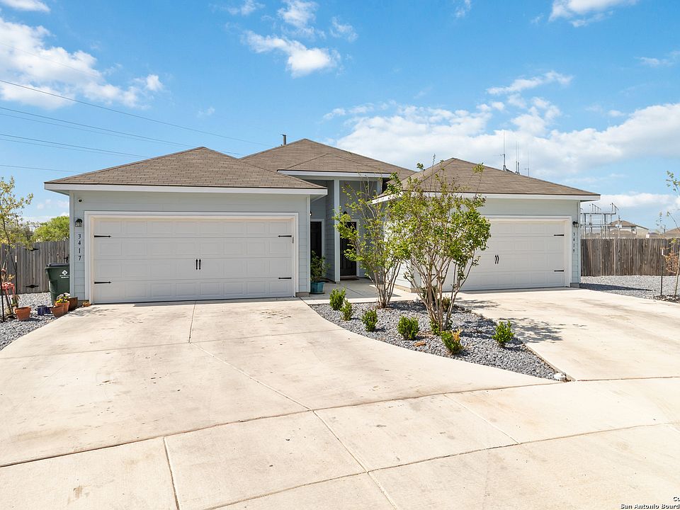 Welcome to your Home Sweet Home in Jordans Creek in Seguin, TX! Talk about the perfect property to "House Hack!" Simply rent out both units, or rent out one side and live in the other! Unit 3417 is leased till 01/10/27 at $1,295/month and Unit 3419 is currently vacant and move-in ready! This Beautiful & Spacious Luxury Duplex features 11 foot ceilings in living room, 10 foot ceilings in master bedroom, upgraded flooring throughout and gorgeous granite countertops. All kitchen appliances included. 42" inch upper cabinets in the kitchen and bathrooms. Master bath has large vanity with dual sinks and full-size, walk-in shower and also includes an oversized 2-car garage. This property is one of the largest lots in the community and situated in the middle of the only cul-de-sac in this community and offers huge backyards for both units. Located just off Hwy 123 with easy access to I-10. Do not miss this chance to own a piece of the beautiful city of Seguin!