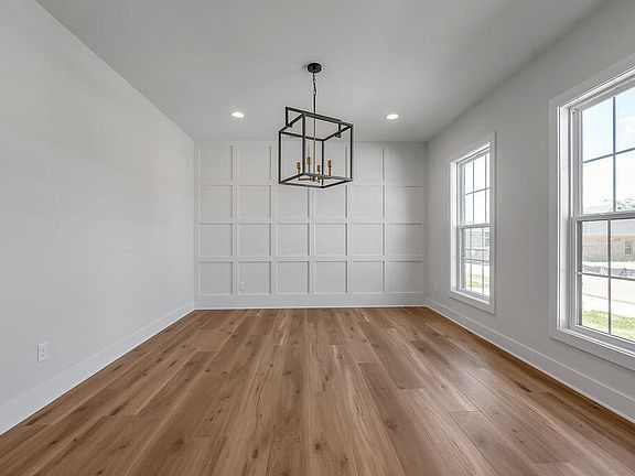 Welcome to the Newcomb II! A traditional two-story home with a first-floor primary bedroom plus three bedrooms, a loft, full bath, and unfinished storage area on the second floor. A large flex area off the entry can serve as an office or formal living area & decorative accent wall for designer appeal. The kitchen includes a pantry and island with counter dining, opening to the large central Family Room. A dedicated dining area off the kitchen overlooks the rear yard with a feature window and vaulted ceiling. A mudroom offering drop zone cubbies for additional storage that connects the garage to the kitchen, as well as the separate utility room with built in folding counter. The first-floor primary bedroom suite is a spacious retreat, with dual vanity with rectangular bowls & quartz countertops, commode closet, walk-in closet, and 42x72 drop-in garden tub and separate 4'x3'8' fully tiled shower. Nine-foot ceilings are standard on the first floor with ceilings over 10' in the kitchen and family room, and a vaulted dining area. Exterior details include a hip roof and rear covered patio.