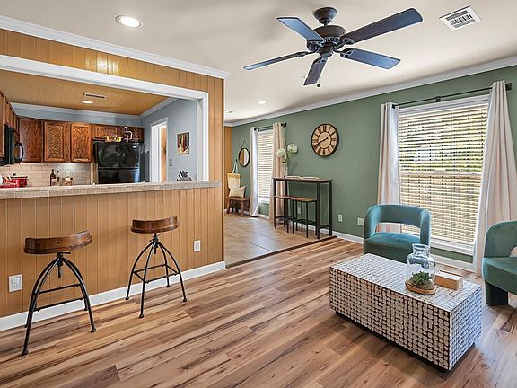 New vinyl plank flooringStorage buildingBack covered patioGas range stoveBeautiful cabinetryMetal roof and siding