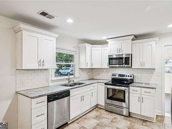 Welcome home to this beautifully updated 1953 bungalow in Belvedere Park. Originally renovated in 2018, the home has seen even more thoughtful updates by the current owners. All windows were replaced in 2024, bringing in abundant natural light while improving energy efficiency. Fresh interior paint and new flooring in the third bedroom add a bright, clean feel, while the newer (2022) privacy fence makes the spacious backyard perfect for pets, play, and entertaining. A storage shed to the side of the deck offers plenty of room for tools, lawn equipment, or seasonal storage. The stylish kitchen features granite countertops, subway tile backsplash, and white cabinets, opening seamlessly to the living room for modern, comfortable living. Original hardwood floors were refinished to highlight the home's charm, and the converted carport offers a convenient laundry space and additional bedroom. Step outside to your oversized deck-ideal for BBQs, morning coffee, or unwinding with friends. All this in the vibrant Belvedere Park community, close to parks, dining, shops, and with easy access to I-20 and I-285.