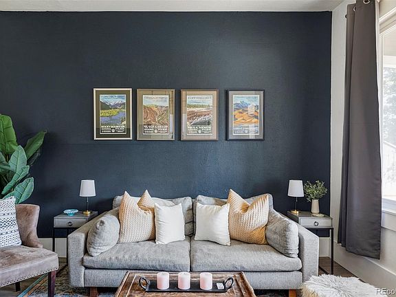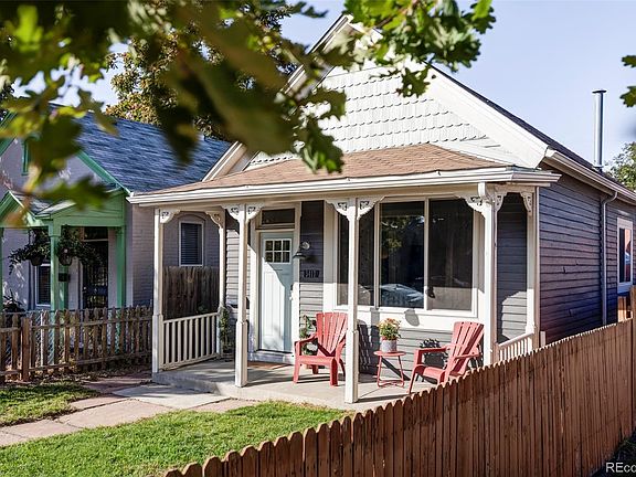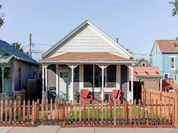 Charmingly renovated, this classic Cole home glows with timeless details and modern upgrades. Nestled in a central location near shopping, restaurants and the light rail, this cozy escape sits just two blocks from the RiNo Art District with easy access to downtown and I-25. Enjoy outdoor relaxation on a covered front porch overlooking a fenced-in front yard. High ceilings and newly added, expanded windows flood the interior with abundant natural light. Handsome wood flooring flows from a bright living room into a dining area with a built-in table. Exquisitely updated, the kitchen showcases new appliances, butcher block countertops and a farmhouse sink. Two sunlit bedrooms share a full bath with a modern vanity. Retreat to a fully fenced backyard with a patio, perfect for outdoor entertaining. Upgrades include fresh paint and a new washer, dryer and water heater. This spacious lot allows for the potential addition of a garage with an ADU above, providing possibilities for rental income.
