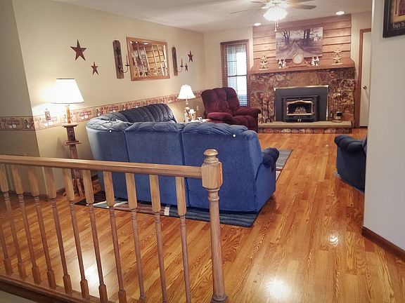 Check out this beautiful country setting just minutes from town built in 1995. This well maintained home sits on 10.23 acres (8 wooded,2 yard). With 2101 ft² this home offers 2 /3 bedrooms and an astonishing 4 and a 1/2 baths. With wood floors throughout most of the main level. This move in ready home has 2 fully equipped kitchens. One is located in the finished, open basement that offers a walkout door to a patio. Lots of closets and storage throughout the home. Not to mention the 2 car ATTACHED garage, an oversized unattached 2 garage with workbenches and shed, and a 12x18 outbuilding as well. Sit in the carpeted sunroom and watch wildlife during every season with the gas fireplace, cozy up in the living room around the large stone wood burning fireplace or head to the basement and relax with the gas fireplace. Great views from the covered front porch and the side patio as well. ALL kitchen appliances stay (refrigerator, stove, and dishwasher)plus the washer and dryer. If things couldn't sound any better, how about a 1 year home warranty!! This home won't last. Call today to make an appointment. No renters or land contracts.