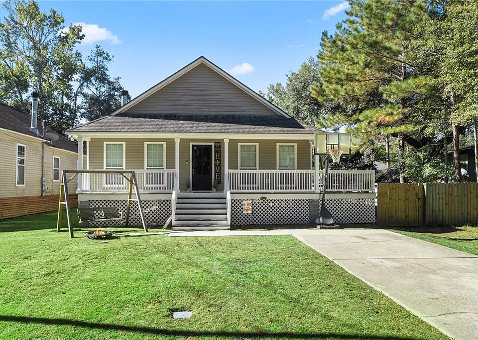 CHARMING ACADIAN STYLE HOME ON A QUIET STREET! Step into southern charm with this beautiful 3 bedroom 2 bath raised Acadian-style home featuring a partially wraparound porch just right for morning coffee or relaxing evenings. Inside, the spacious living area boasts stunning cathedral ceilings and a cozy wood-burning fireplace that creates a warm, inviting atmosphere. You'll love the open layout, large bedrooms, and the primary suite complete with a walk in closet and a relaxing garden tub. With no carpet throughout, this home offers easy maintenance and timeless appeal. Outside, enjoy a fenced backyard suited for entertaining, gardening or pets, and a dedicated fire pit with sitting area for gatherings under the stars, and plenty of room for your boat or RV. Located on a quiet street, this home combines peaceful country style living with convenient access to shopping, restaurants, and just minutes from the interstate! Schedule your showing today!
